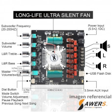Potencia de salida: canales izquierdo y derecho ≤ 220W subwoofer ≤ 350W