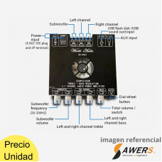 Altavoces adaptadores: canales izquierdo y derecho 30-220W, subwoofer 3-8Ω 30-350W 2-8Ω